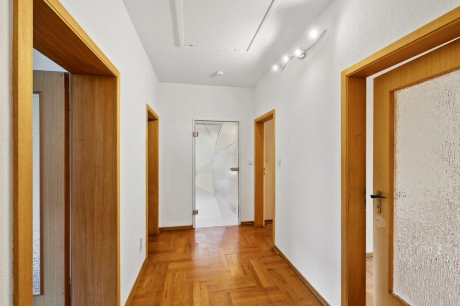 Die Räumlichkeiten sind gut geschnitten und ermöglichen eine flexible Nutzung. Zudem bietet der große Dachbereich Potenzial für einen Ausbau zu weiterer Wohnfläche.