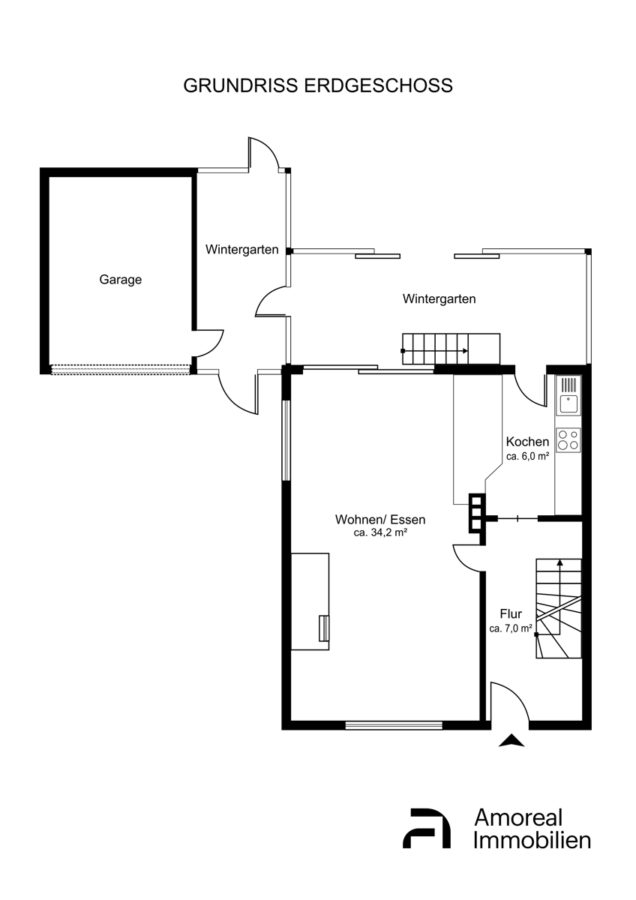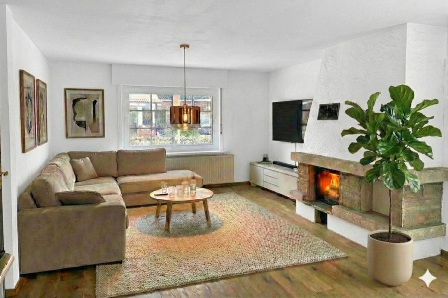 Diese charmante, ursprünglich als Finnenhaus konzipierte Doppelhaushälfte mit drei Zimmern bietet auf ca. 91 m² Wohnfläche ein gut durchdachtes Raumkonzept, das vor allem durch Offenheit und Licht besticht. Das Herzstück des Hauses ist der großzügige, offene Wohn-, Koch- und Essbereich. Hier sorgt ein toll anzusehender Kamin an kühlen Abenden für eine behagliche Atmosphäre und macht diesen Bereich zum absoluten Lieblingsplatz für Familie und Freunde. Direkt angrenzend erweitert ein ca. 30 m² großer, angebauter Kaltwintergarten Ihren Wohnraum als idealen Ort für den Morgenkaffee oder um die Übergangsjahreszeiten geschützt zu genießen.