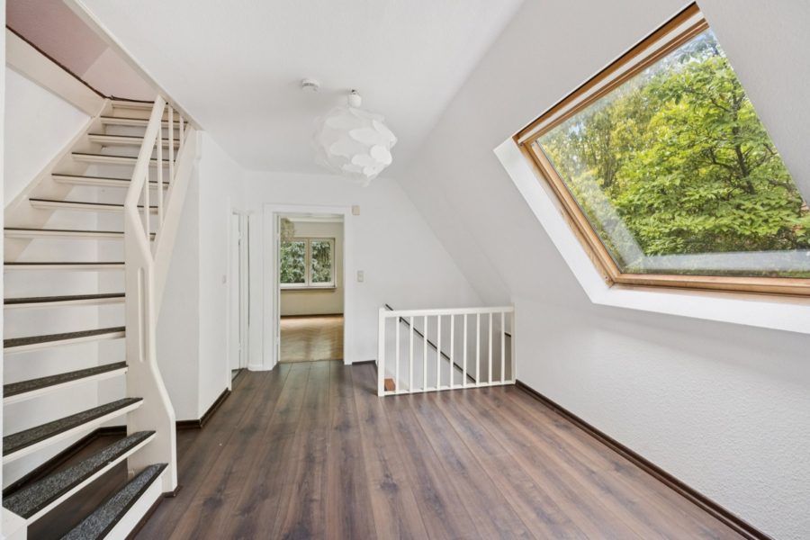 Die Immobilie befindet sich in einem der begehrtesten Wohnviertel im Westen Hamburgs, in einer ruhigen Sackgasse, die nur Anliegerverkehr aufweist. Besonders attraktiv ist die direkte Lage am Niendorfer Gehege – ein weitläufiges Wald- und Naherholungsgebiet, das Spaziergänge, Joggingrunden und Naturerlebnisse buchstäblich vor der Haustür ermöglicht.