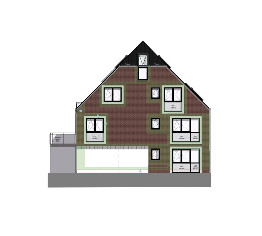 Hochwertig präsentiert sich das Gebäude mit einem Wärmedämmverbundsystem (WDVS) umhüllt von einer rötlichen Backsteinfassade. Ideal darauf abgestimmt, die bodentiefen, dreifach isolierverglasten Kunststofffenster, große Balkone, Loggien oder Terrassenflächen mit Südausrichtung.